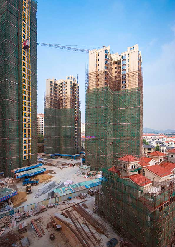 3月26日,記者發(fā)現(xiàn)項目主入口處——豪華穹頂?shù)哪_手架已經(jīng)拆除,給人以大氣、厚重之感,穹頂兩側(cè)的商鋪及人行道亦整飭一新。進入到施工現(xiàn)場,一幢幢洋房、別墅拔地而起。三正地產(chǎn)工程管理人員介紹,臥龍山一號洋房、別墅主體結(jié)構(gòu)基本完工,大部分建筑已經(jīng)進入內(nèi)外墻抹灰及裝修階段。其中7#、8#幢洋房率先破繭——防護網(wǎng)已經(jīng)拆除約1/3,露出色彩明快的立面。期待已久的業(yè)主,終于能夠一睹真容。一位參觀樣板房的置業(yè)者表示:洋房外觀比想象中的更加漂亮。